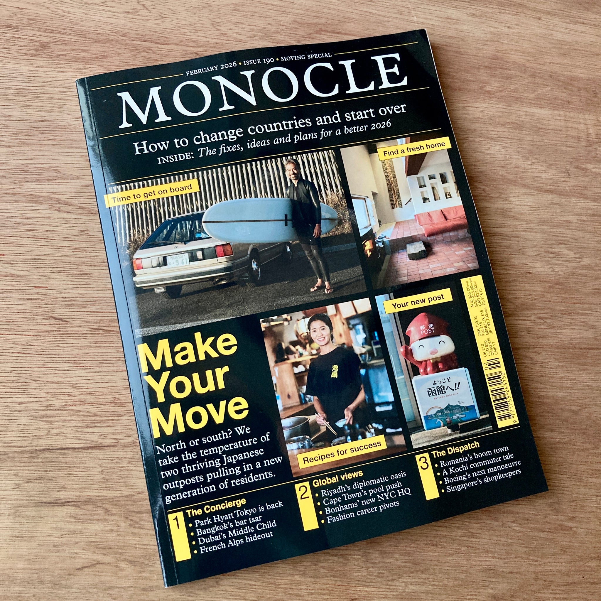 "Looking to make a fresh start in 2026? Our February issue is packed with fixes, ideas and plans for the year ahead. Follow the lead of the creatives and entrepreneurs moving to Japan’s waterfront enclaves or dive into the Cape Town pools bringing the city’s residents together. Stop by Los Angeles’s traffic-free oasis, peek inside the company pioneering studio spaces for digital creators and meet the fashion masters who have pivoted careers. Plus: we speak to Spain’s migration minister as the country bucks European trends. It’s time to make your move."