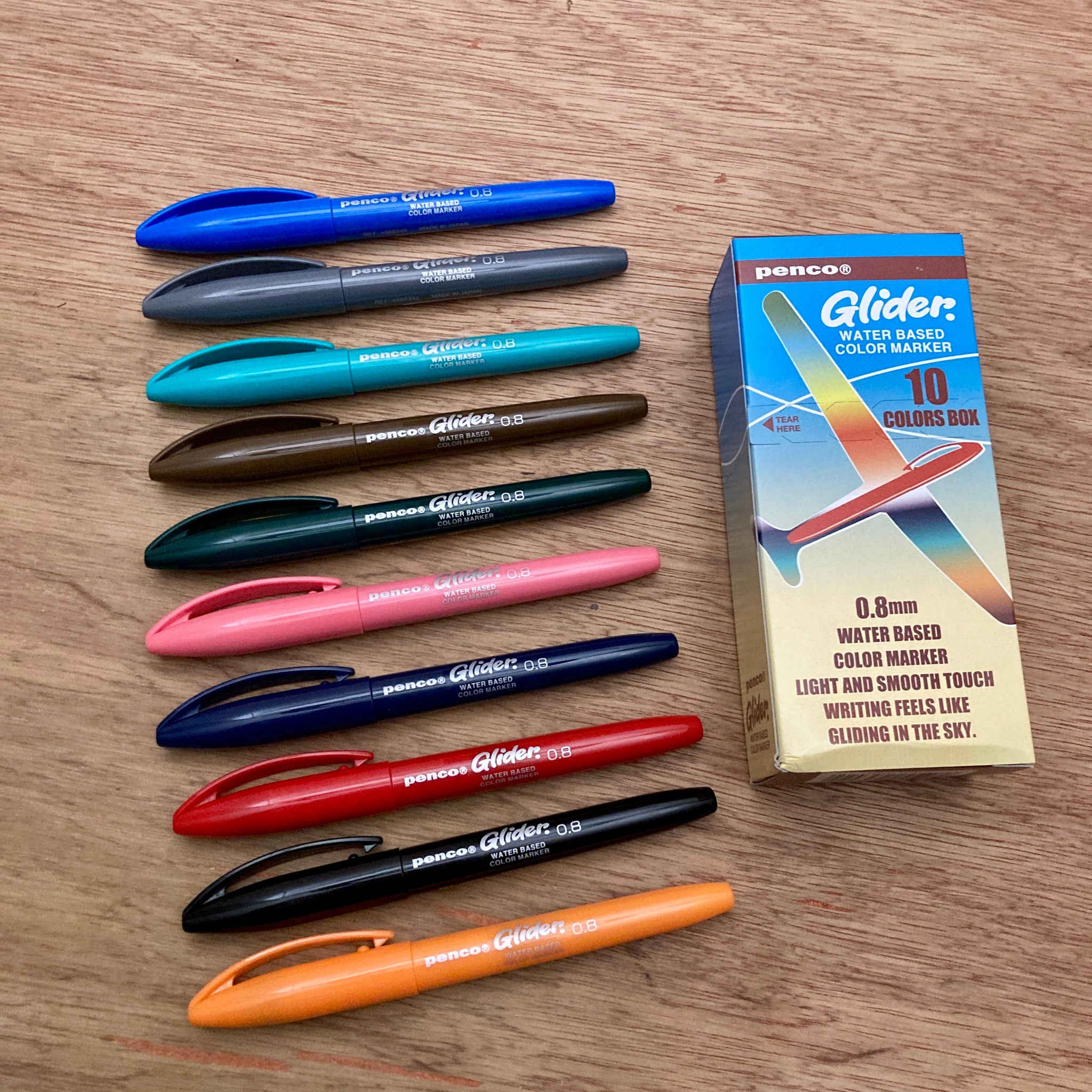 Penco water-based colour pens feature a smooth writing experience, like a flying glider. The 0.8mm medium-thick tip is perfect for writing and marking. In addition to classic bright colours such as red and pink, we also use highly visible colours such as navy and brown, resulting in a rich colour lineup. Enjoy Penco's particular colours and light writing feel.